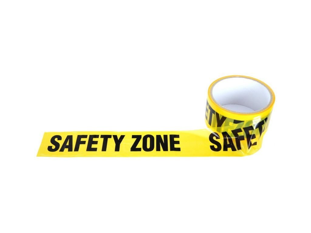 Sárga szegélyszalag SAFETY felirattal.