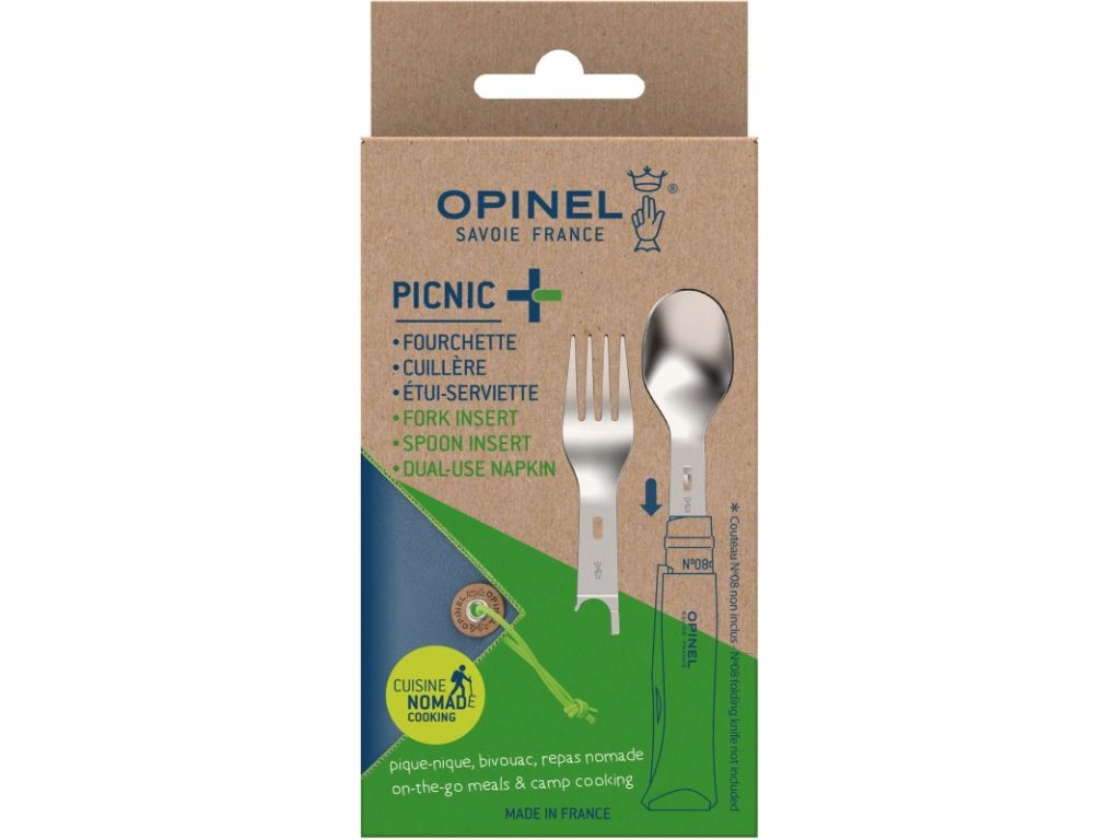 Van Opinel N°08 zsebkésed, és nem tudsz nélküle élni? Mit szólnál hozzá, ha kiegészítenéd egy okosan kitalált, könnyű és kompakt kiegészítővel – kompatibilis rozsdamentes acél kanállal és villával? A mikroszálas szalvétával együtt csomagolva elengedhetetlen útitársakká válnak utazásaid és kempingezéseid során.