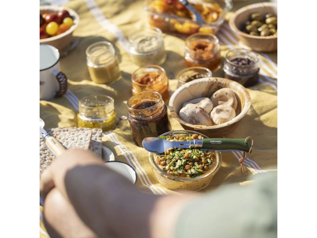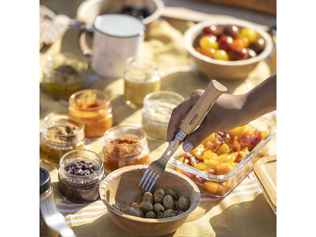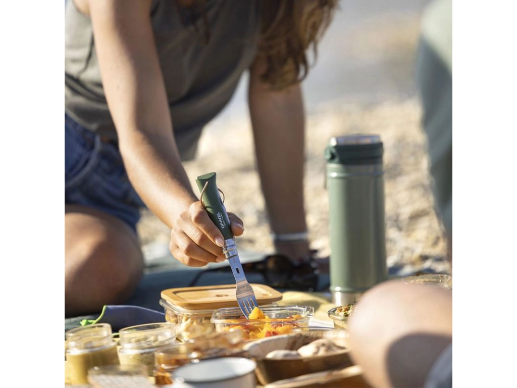 Praktikus készlet, amelyet minden Opinel N°8 zsebkés tulajdonos kihasznál, legyen az túrázó, utazó vagy a természetben való hosszú séták kedvelője, ugyanúgy, mint a városi piknikező. A kis csomagban bárhová magaddal viheted az okosan kitalált és tartós kiegészítőt a kényelmes étkezéshez útközben. Az Opinel összecsukható késsel együtt fenntartható rozsdamentes acél, teljes evőeszközkészletet hozol létre, amely teljesen helyettesíti az egyszer használatos műanyag vagy fa evőeszközöket.