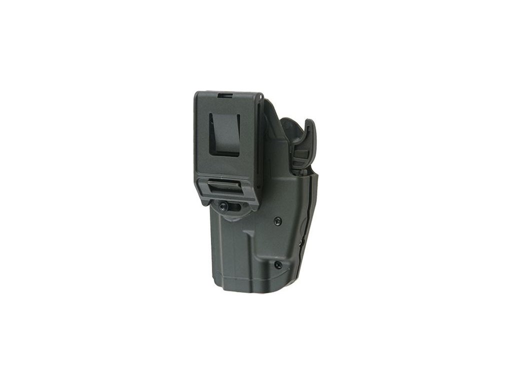Az univerzális tokot a Primal Gear gyártotta tartós nejlon polimerből. Univerzális kialakításának köszönhetően kompatibilis különböző pisztolymodellekkel, mint például: G17 / 18C / 20, H&K 45, M&P 22, P226 vagy 92F. A felhasználó könnyen hozzáigazíthatja a tokot saját pisztolymodelljéhez a szélesség beállításával két csavar segítségével, valamint a zár közelében található eltávolítható dugóval.