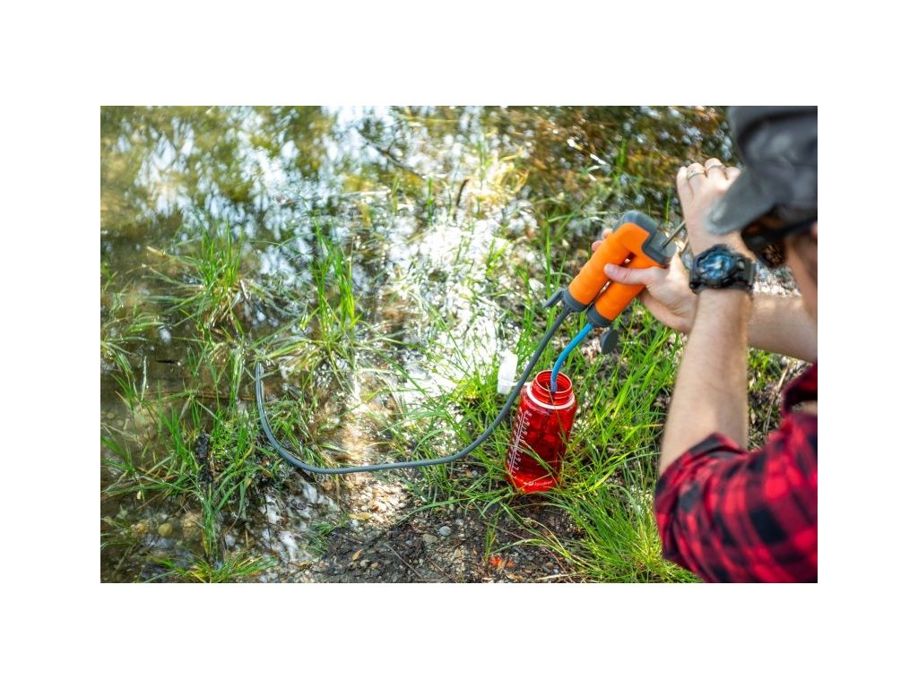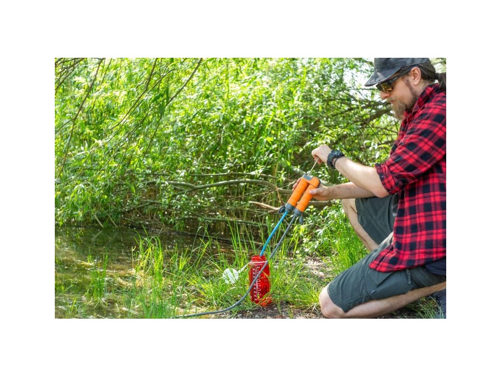 Renovo Water MUV Backcountry Pump Package egy moduláris vízszűrő pumpával, amelyet nagyobb mennyiségű víz hatékony tisztítására terveztek közvetlenül a terepen. Ez a rendszer ideális családok, csoportok vagy cserkészek számára, akiknek gyorsan kell biztonságos vizet szerezniük természetes forrásokból. A szűrők kombinációjának köszönhetően képes eltávolítani a vegyi anyagokat, nehézfémeket, baktériumokat, eColi-t, Giardia-t, Cryptosporidiumot, cisztákat és egyéb káros anyagokat. A szűrők igény szerint kombinálhatók, ami rugalmasságot biztosít különböző körülmények és vízforrások esetén. Kiváló választás kempingezéshez, túrázáshoz, túléléshez, vészhelyzetekhez és utazáshoz bizonytalan ivóvízforrású területekre.