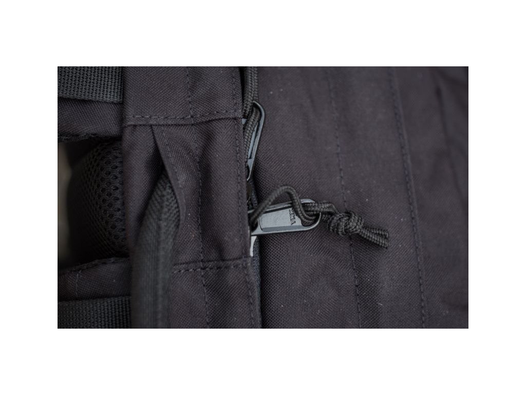 A párnázott vállpántok mellkasi szíjjal vannak felszerelve. A hátizsák oldalain kompressziós pántok találhatók, amelyek lehetővé teszik a hátizsák kompaktabb méretre történő összehúzását szükség esetén. A hátizsák testén található egy nyílás a hydrapack csövének vagy az elektronika kábeleinek átvezetésére. A hátizsák kiváló minőségű és tartós Nylon 420D anyagból készült. A zárás YKK cipzárral van megoldva. Izraelben készült.