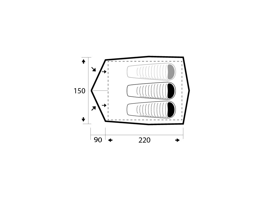 Modell 2-3 személy számára, hagyományos szerkezettel és kivételes hosszúsággal a felhasználó nagyobb kényelme érdekében. A megfelelő előtér biztosítja a csomagok tárolására szolgáló helyet. A sátor előnye az alacsony súly és a gyors felállítás.