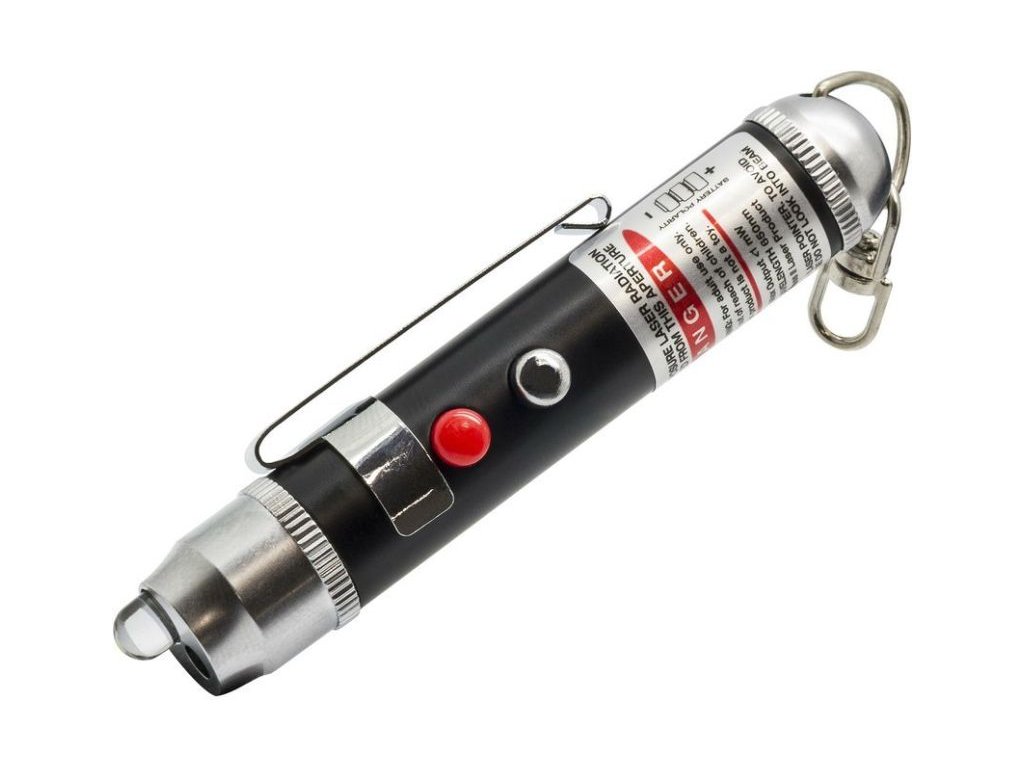 A TRUE UTILITY LaserLite erős LED zseblámpája és piros lézersugara ideális kulcstartón való hordozásra.