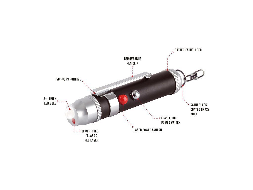 A True Utility Laserlite TU 211 kis praktikus zseblámpát a beépített karabineres gyűrűnek köszönhetően könnyen rögzíthetjük a kulcsokra. A termék része egy CE tanúsítvánnyal rendelkező piros lézer is, amelyet prezentáció vagy beszéd közben használhatunk, vagy amikor egyszerűen csak rá kell mutatnunk valamire. A zseblámpa rozsdamentes acélból készült. A csomag három lítium elemet tartalmaz.