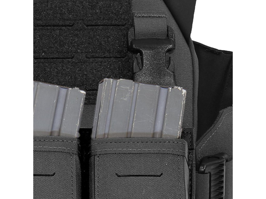 A panel tehát egy olyan rendszer része, amely lehetővé teszi, hogy rövid idő alatt az egész lemez hordozót átkonfiguráljuk, hogy pontosan megfeleljen a helyzetnek. A panel modularitását tovább növeli a lézerrel vágott MOLLE kötés (egy szélességben és négy magasságban mindhárom zseben). Ez lehetővé teszi széles körű további kiegészítők csatlakoztatását.