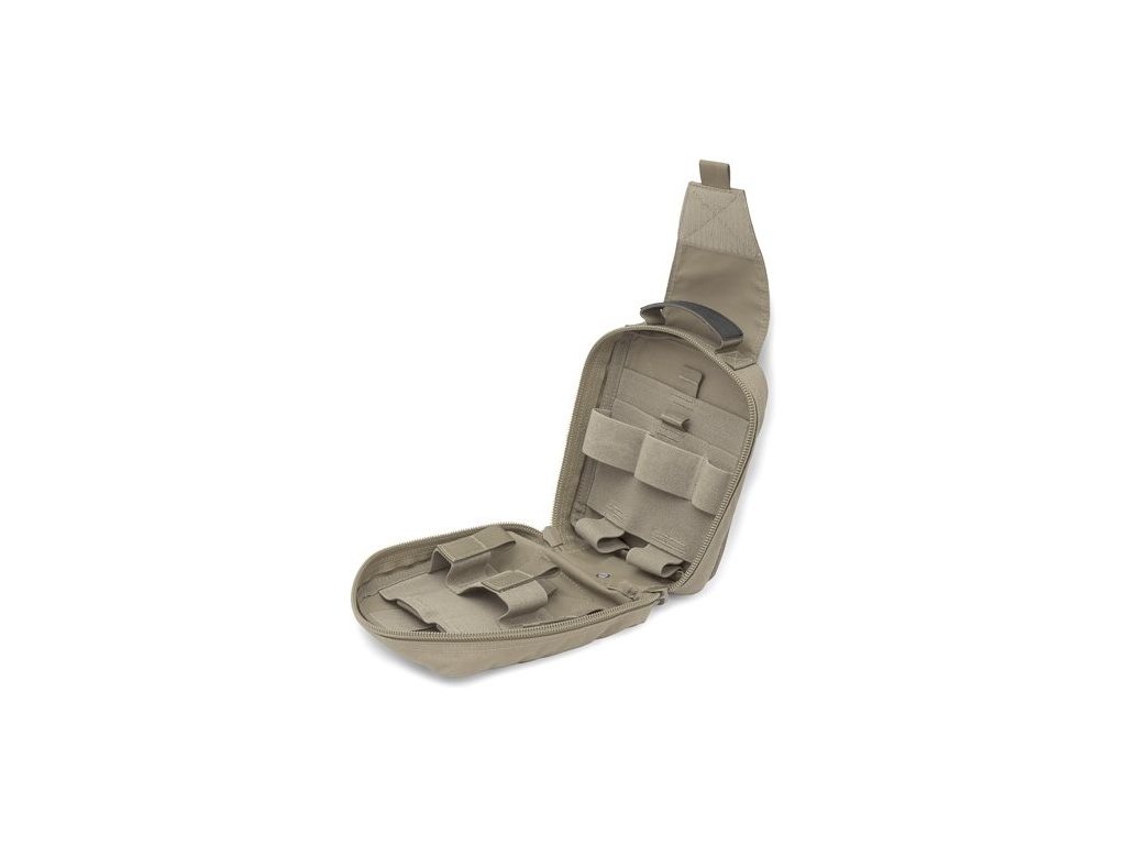 A tépőzáras panel segítségével a tok a helyén marad. Továbbá egy gyorscsattal ellátott hevederrel van biztosítva. Szükség esetén csak ki kell oldani a gyorscsatot, és vagy hagyományos módon használni a tokot, vagy a fogantyú segítségével letépni az elsősegélytáskát. Ily módon az elsősegélytáska azonnal rendelkezésre állhat egy másik csapattagnak, és az operátor folytathatja a feladat végrehajtását.