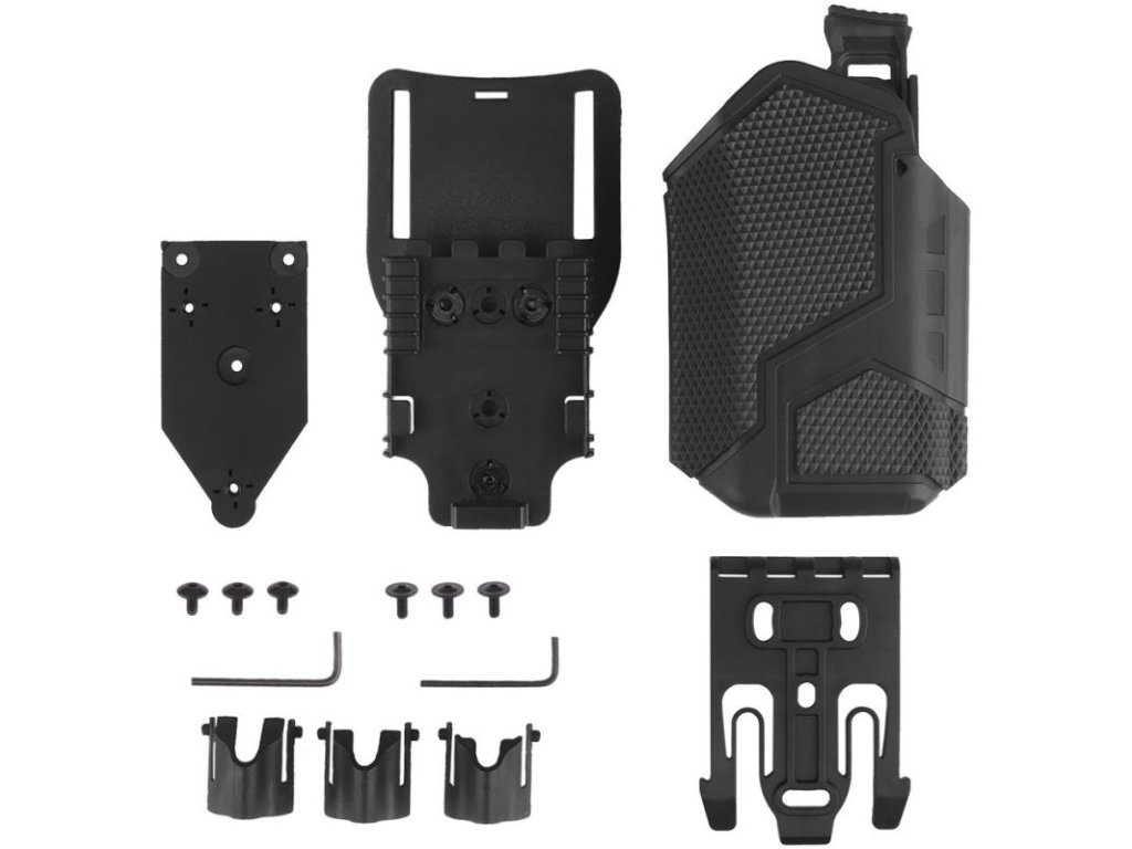 Univerzális tok Wosport GB-81 pisztolyokhoz készült, amelyek lámpával vannak felszerelve SUREFIRE X300A. Tartós nejlonból készült, és megbízható rögzítést biztosít a fegyver számára. Tartozéka egy övcsatlakozó rendszer 55 mm szélességig és három belső adapter, amelyek lehetővé teszik a belső tér különböző típusú pisztolyokhoz való igazítását.