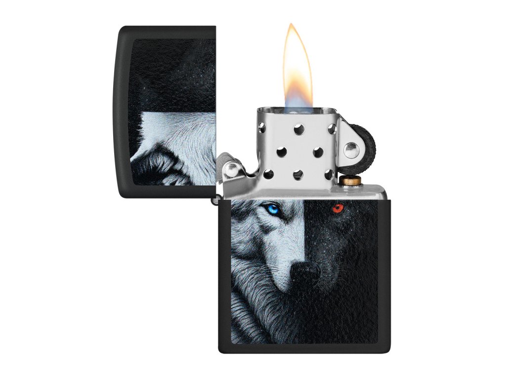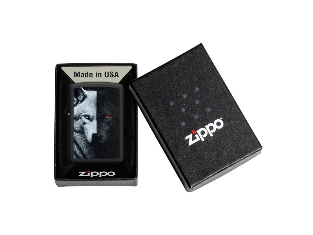 ZIPPO Two Wolves Design (66076) egy erős szimbolikus motívumot hoz, amelyet az amerikai őslakosok közmondása inspirált. A két farkas története, ahol az egyik haragot, keserűséget és önzést képvisel, a másik pedig szeretetet, együttérzést és nagylelkűséget, emlékeztet arra, hogy az a farkas győz, amelyiket etetjük. Ez az időtlen üzenet fekete matt Black Matte felületre van átvive nyomtatással, amely az öngyújtónak kifejező és mély karaktert ad.