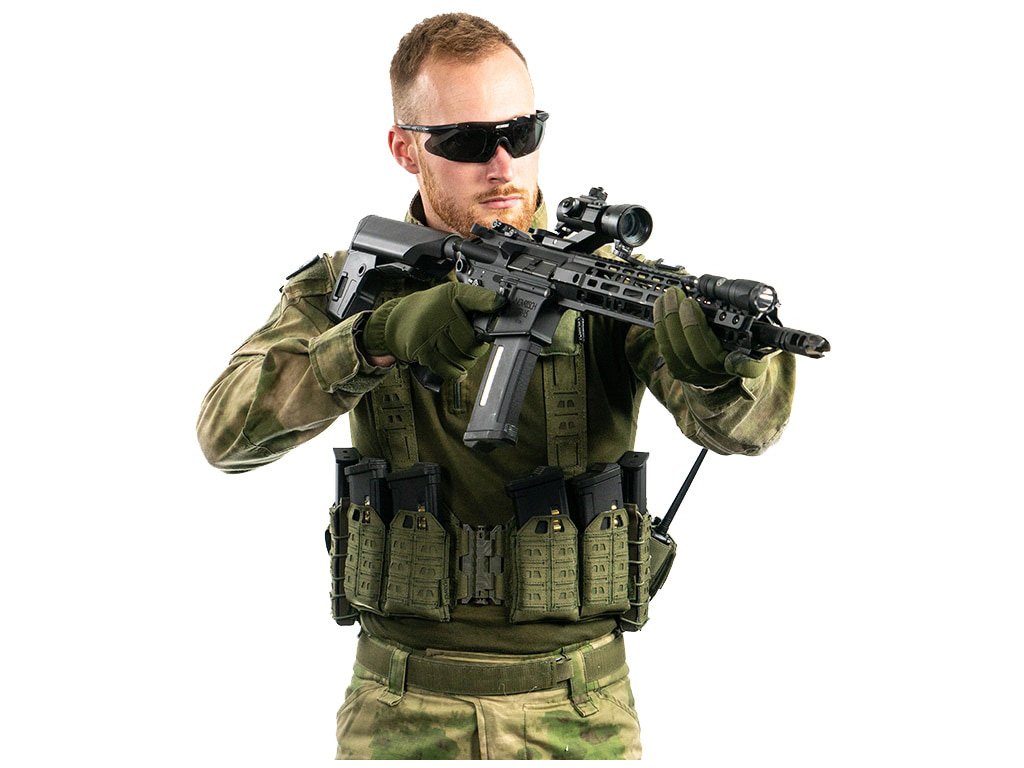 Novritsch Minimal Chest Rig is a lightweight and highly versatile piece of equipment designed for airsoft enthusiasts. Its primary function is to provide a minimalist, comfortable, and efficient way to carry essentials during airsoft games. The rig has an efficient design with a focus on easy movement. The Chest Rig is fully customizable to different body types, thanks to adjustable straps. In the center, there is a specially designed buckle for quick release and fastening. Thanks to modern laser-cut molle webbing, it is fully compatible with most pouches on the market.