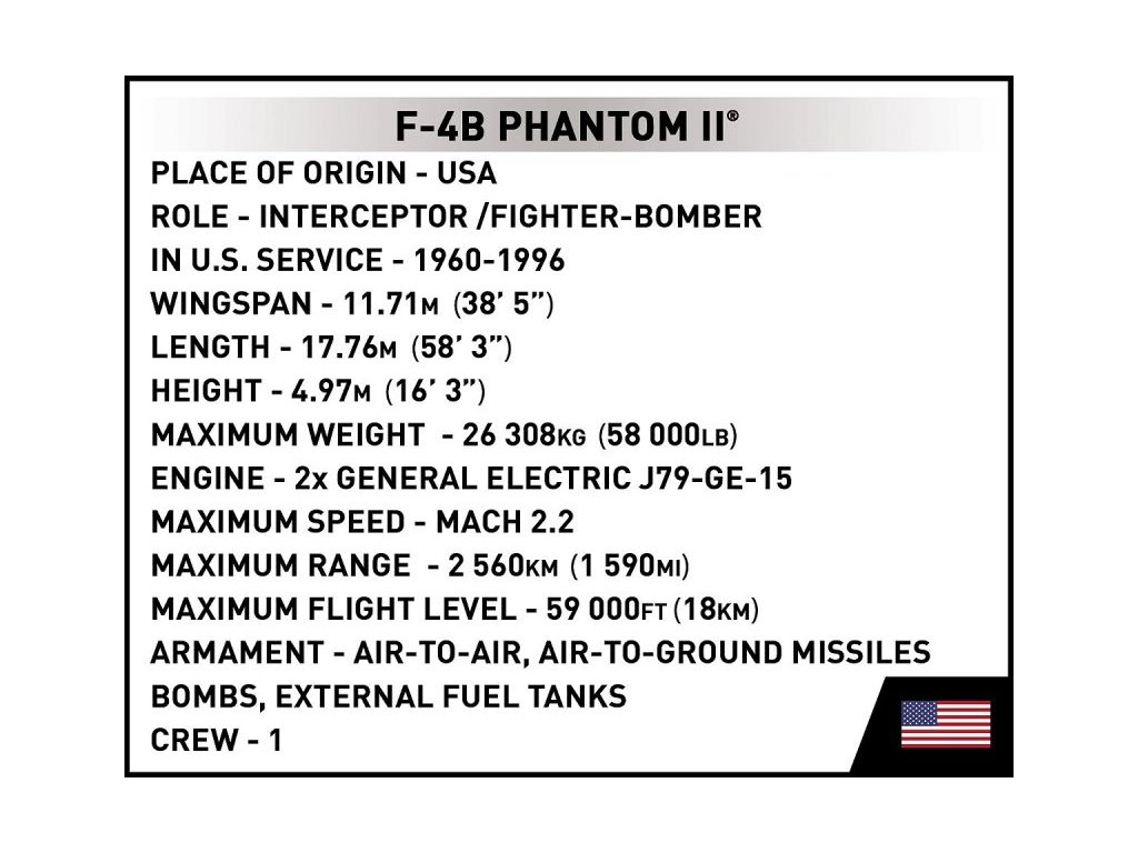 Táto stavebnica predstavuje ikonické americké stíhacie bombardovacie lietadlo F-4 Phantom II s typickou kamuflážou a znakmi jednotky lietadlovej lode USS Midway. Model je veľmi detailný a funkčný, disponuje naklápacími riadiacimi plochami, otváracím krytom kokpitu a možnosťou umiestniť do kokpitu dve špeciálne upravené „polfigurky“. Pod krídlami sú zavesené prídavné palivové nádrže, rakety Sidewinder a Sparrow.