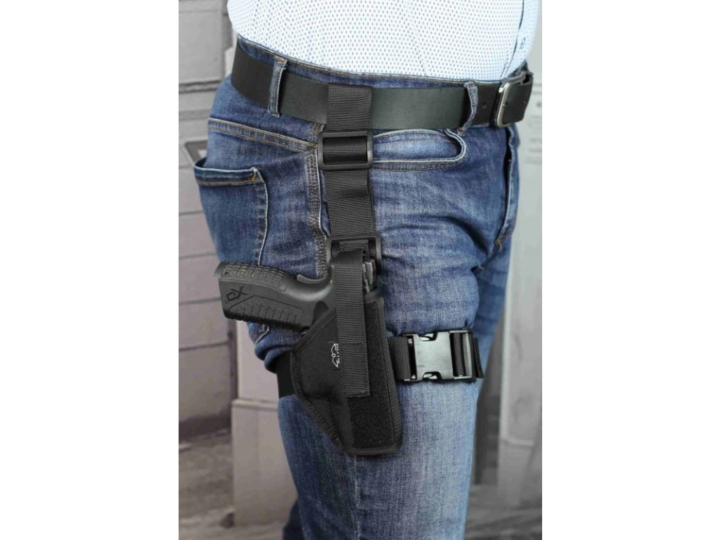 Toto puzdro je prispôsobené na nosenie na stehne. Stabilné uchytenie na stehno zabezpečuje nylonový popruh. Puzdro je výškovo nastaviteľné. Vhodné pre praváka. Celá hlaveň zbrane je krytá.
