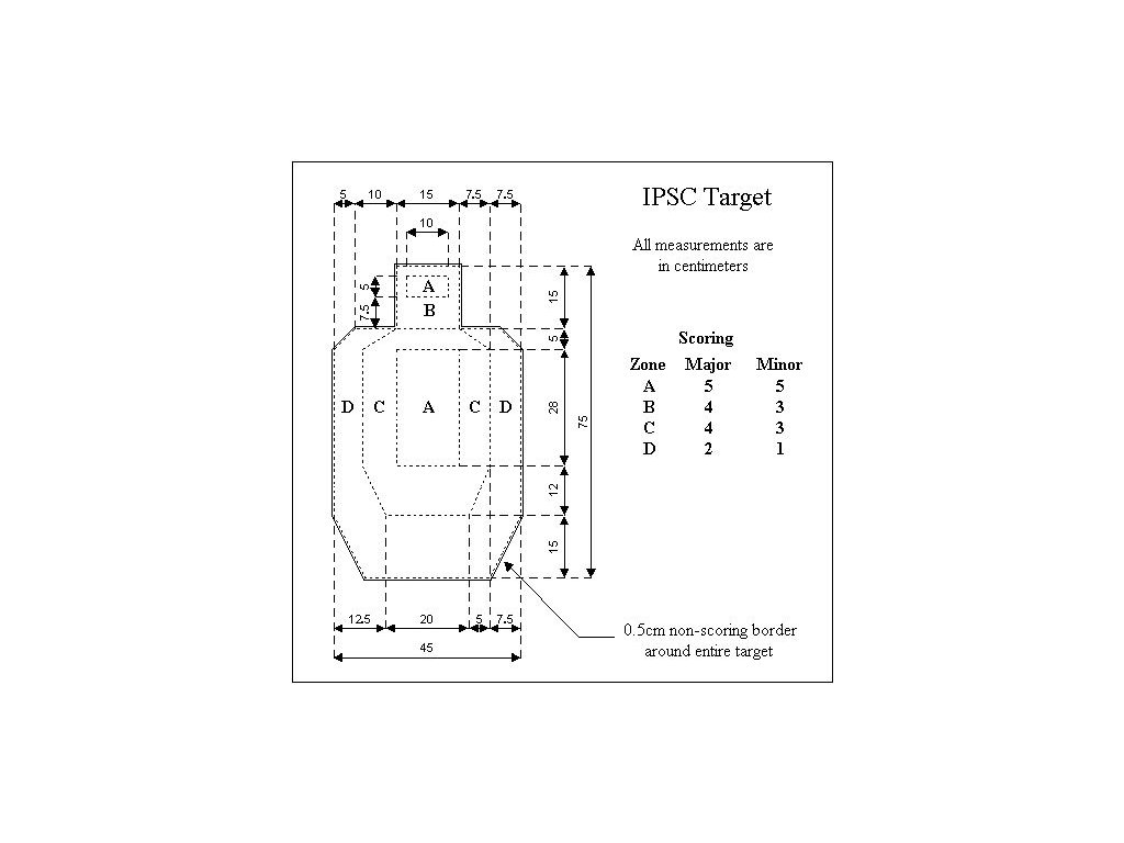IDPA kartónový terč je štandardizovaný tréningový a súťažný cieľ určený pre disciplíny IDPA (International Defensive Pistol Association) aj pre všeobecný tréning streľby. Terč má rozmery 75 × 45 cm a je vyhotovený v prírodnej kartónovej farbe s vyznačenými scoring zónami (A, B, C, D), ktoré sú oddelené perforáciou kartónu. Okolo celého terča sa nachádza nehodnotiaci okraj (0,5 cm), vďaka čomu je bodovanie jasne definované.