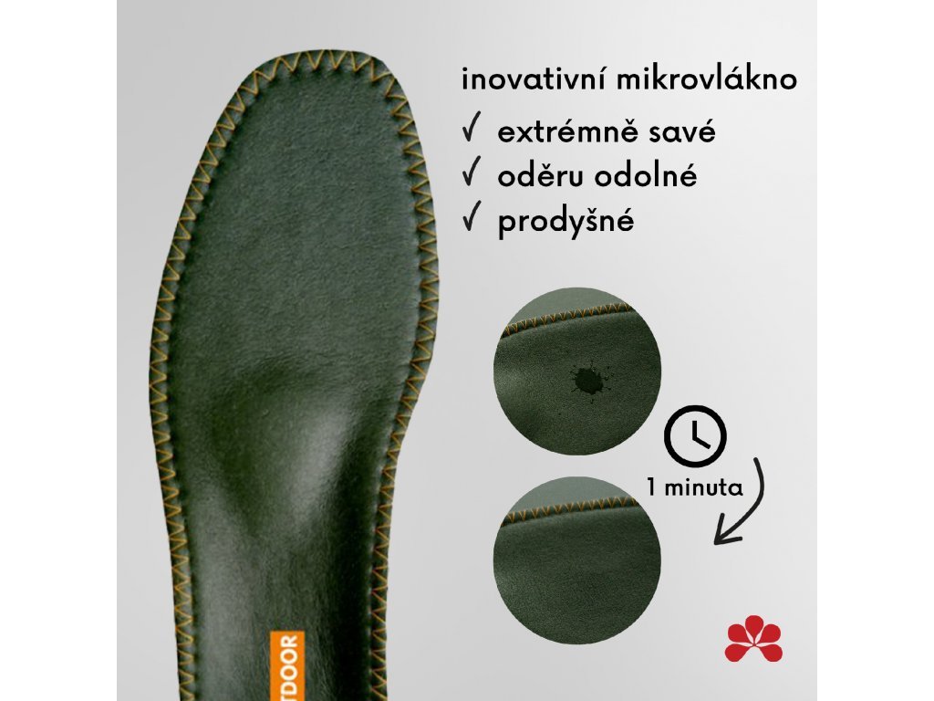 » Vrchný materiál z inovatívneho mikrovlákna je priedušný, savý a odolný proti oderu