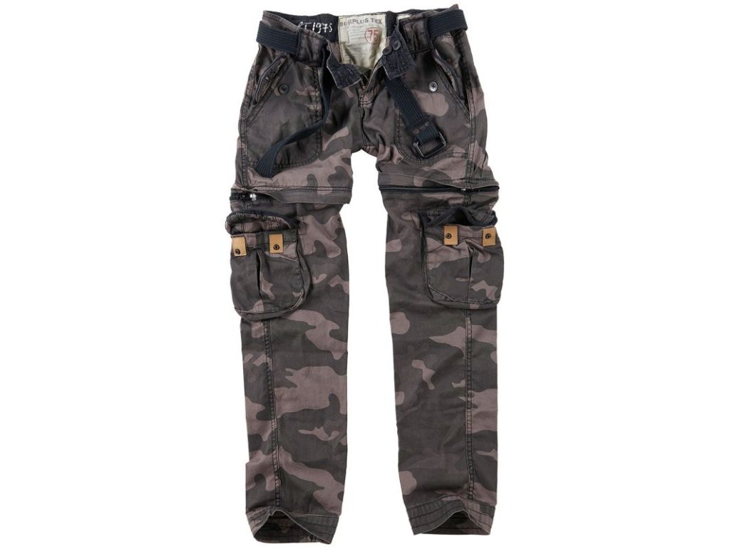 Women's slim fit model from Surplus. The ends of the pants can be detached with a zipper, turning them into stylish women's shorts. The pants have a large number of pockets and are made from super soft material, but have a used and washed look. A sturdy cotton belt is included in the delivery, and the lower part of the snaps at the pockets is reinforced with leather pads.