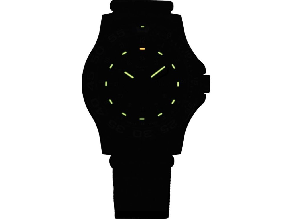 The case has a special construction, the outer case is made of glass fiber reinforced plastic and the inner part with the movement is made of stainless steel. This way, the watch maintains high durability while keeping a low weight.