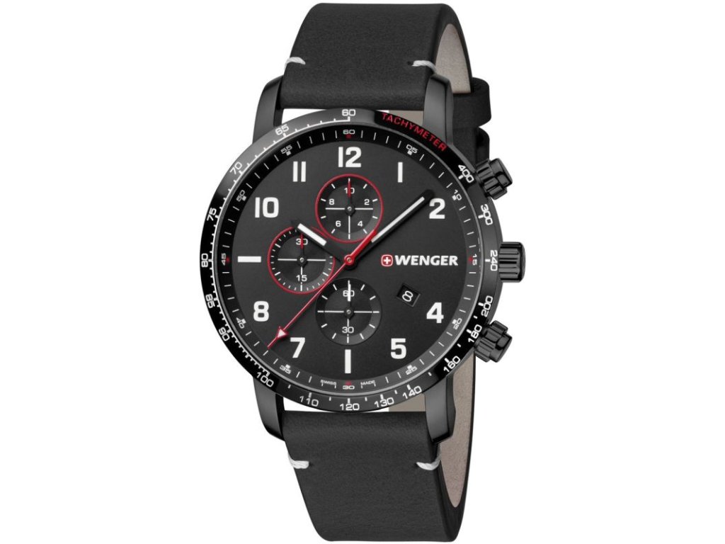 WENGER Watches Attitude Chrono / leather strap - black / black (01.1543.106)