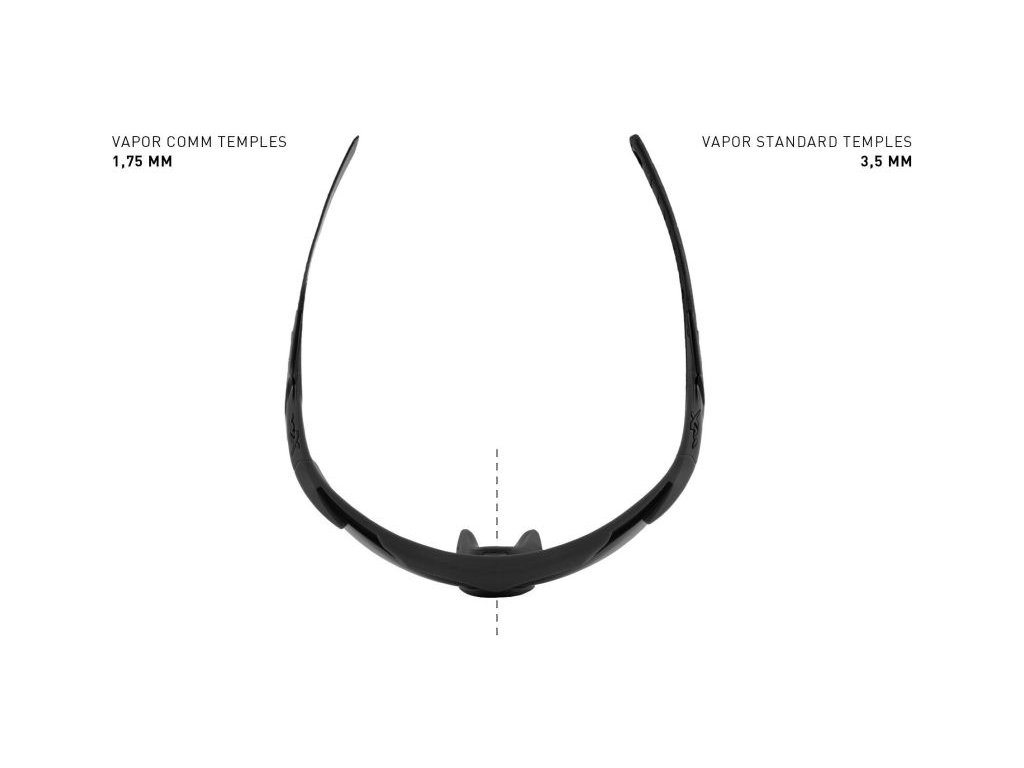 WILEY X VAPOR COMM 2.5 are professional protective glasses designed for maximum safety and comfort in demanding conditions. Thanks to thin COMM temples, they are suitable for wearing under headphones, ear protectors, or communication devices. Their lightweight frame made of Triloid™ Nylon, along with an adjustable nose piece, ensures all-day comfort and stability.